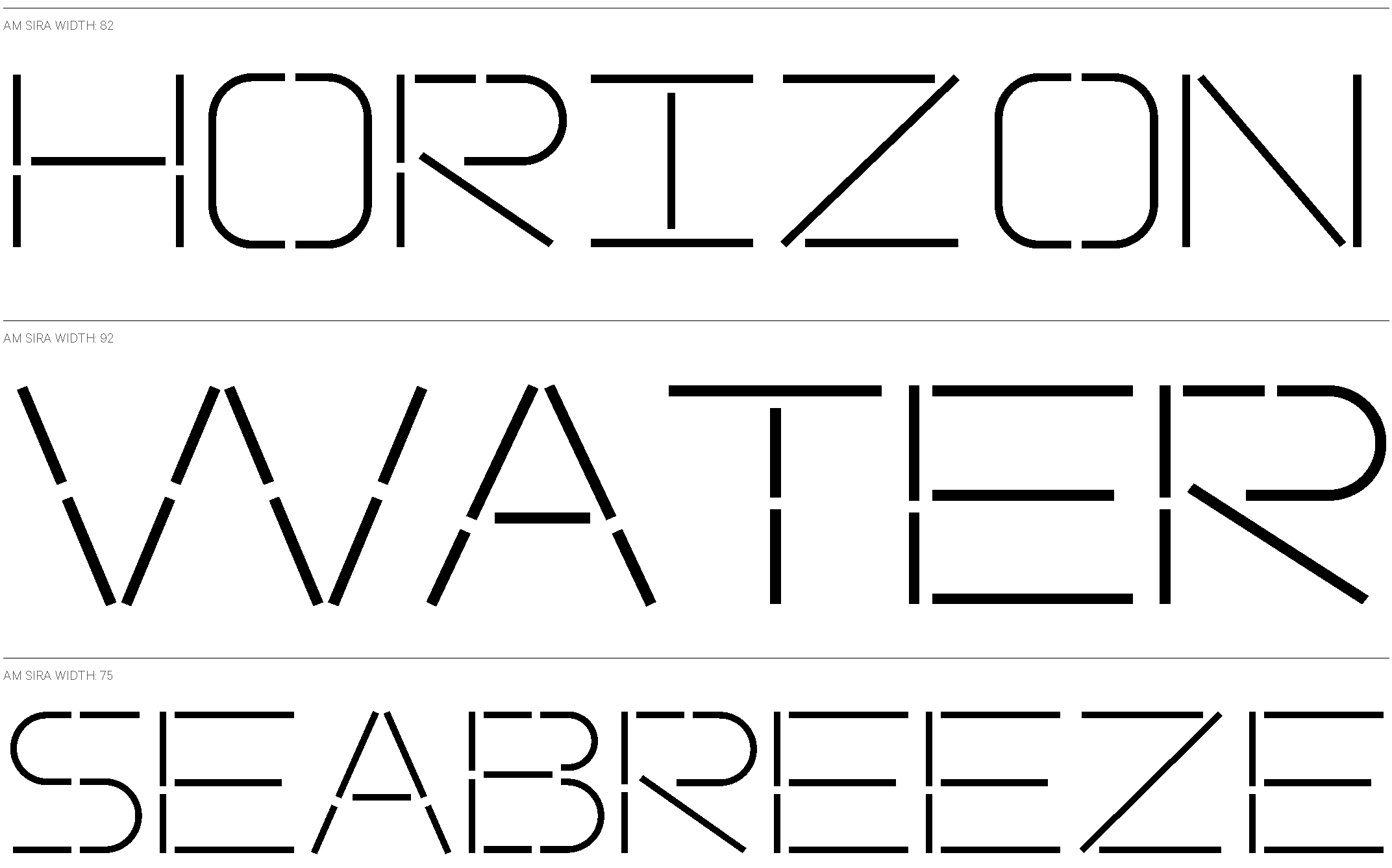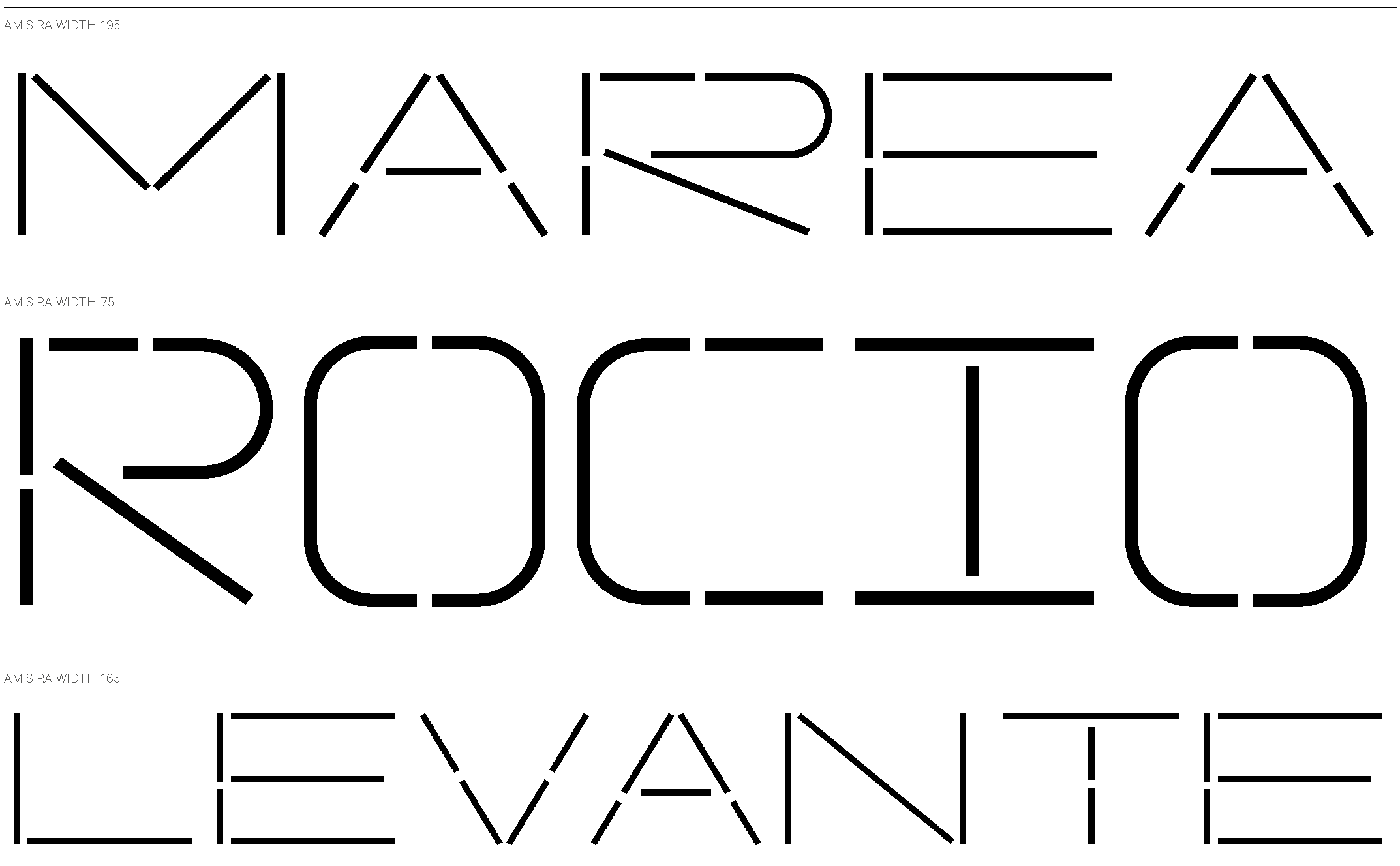 Sira embraces an open, deconstructed aesthetic, where strokes seem to float yet remain connected. It is available in three widths—Standard, Semi-Extended, and Extended—allowing for versatility in composition. Designed exclusively in uppercase, it is ideal for branding, editorial design, and futuristic layouts.